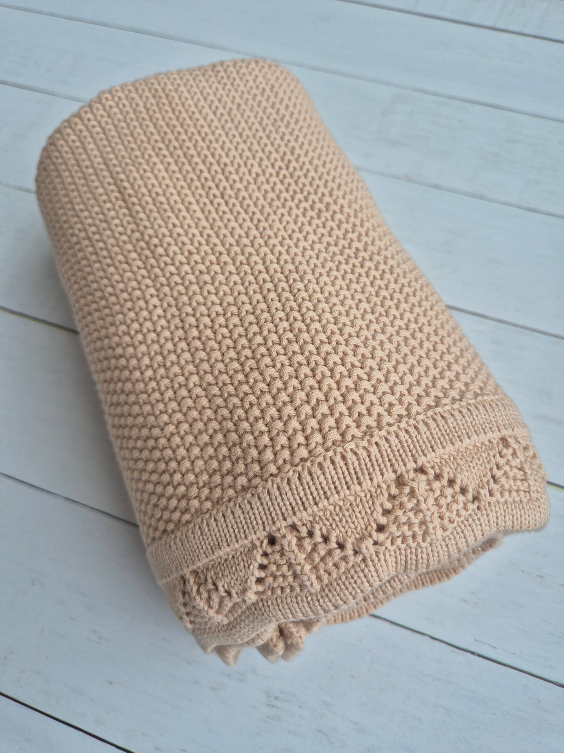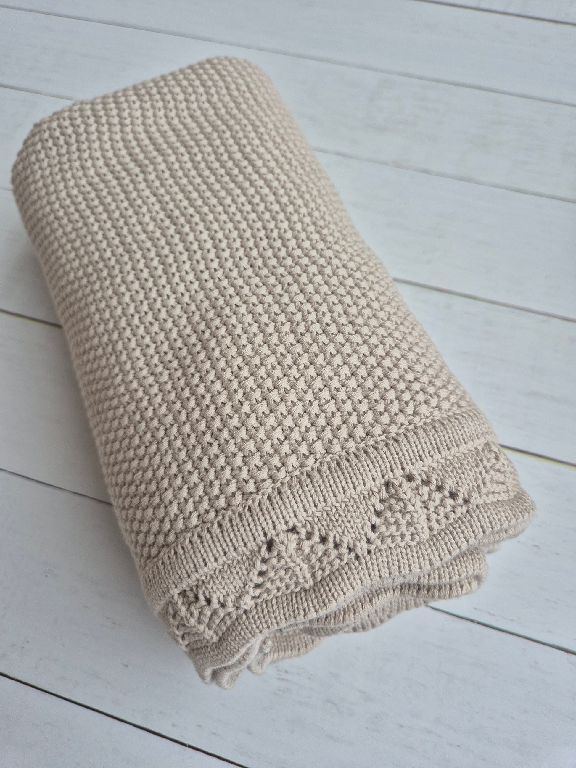 80x100cm, beautiful crochet patterned edge, GOTS certified (Global Organic Textile Standard)